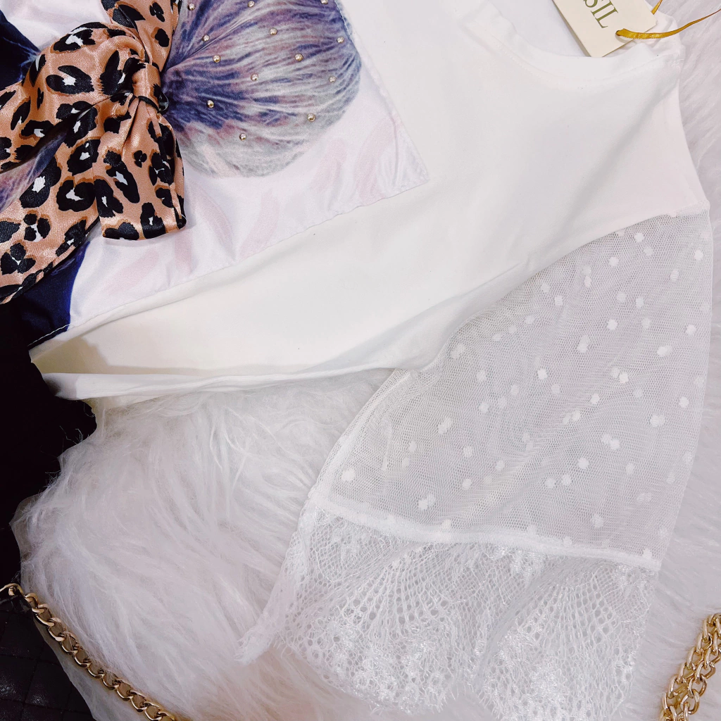 TEE NA MALHA VISCOLYCRA, DETALHE EM APLICAÇÃO BORDADA .