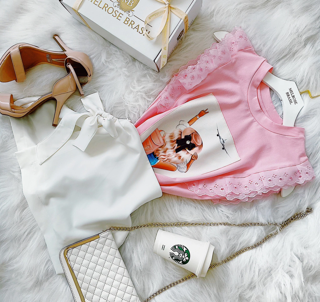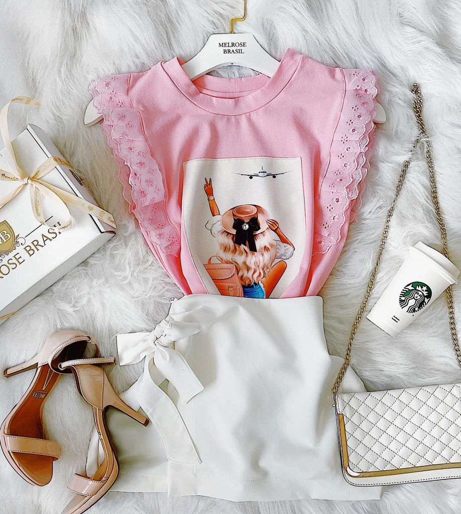 TEE NA MALHA VISCOLYCRA, DETALHE EM APLICAÇÃO BORDADA .