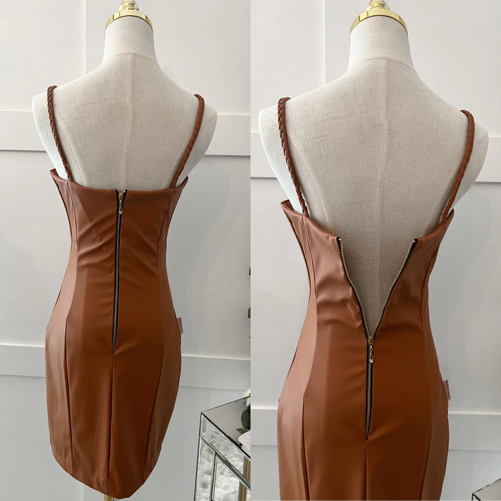 Vestido Larissa no couro eco. Modelo tubinho cavado. Deusooooo! COM ZÍPER NAS COSTAS. Ele é perfeito para arrasar em qualquer ocasião! O couro eco traz um toque de sofisticação, enquanto o corte cavado valoriza suas curvas. Material: COURO ECO.